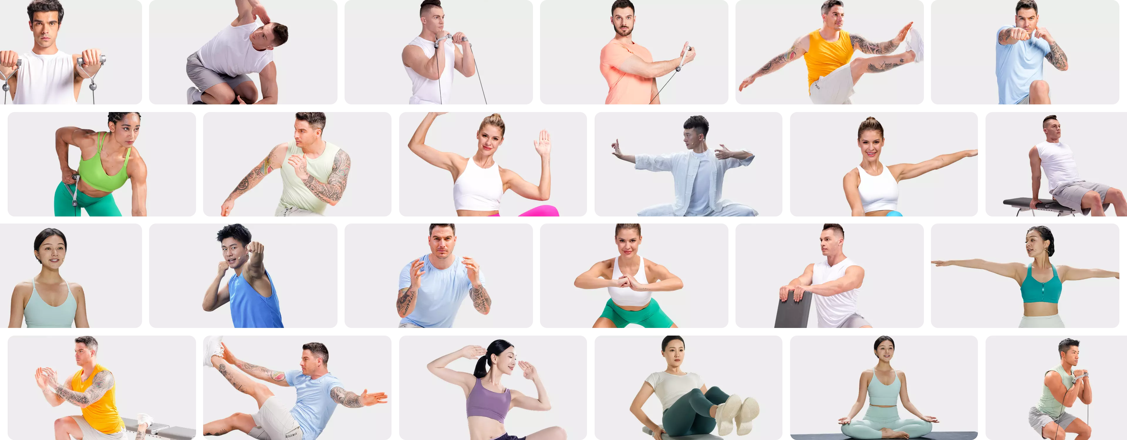 AEKE K1 propose plus de 300 mouvements et plus de 160 cours, incluant des séances de renforcement musculaire pour tous les principaux groupes musculaires, des séances de cardio, de yoga, de Pilates et de méditation. Des squats et développés couchés aux séances de HIIT et d'étirements, K1 offre une expérience fitness adaptée à tous les niveaux d'entraînement.